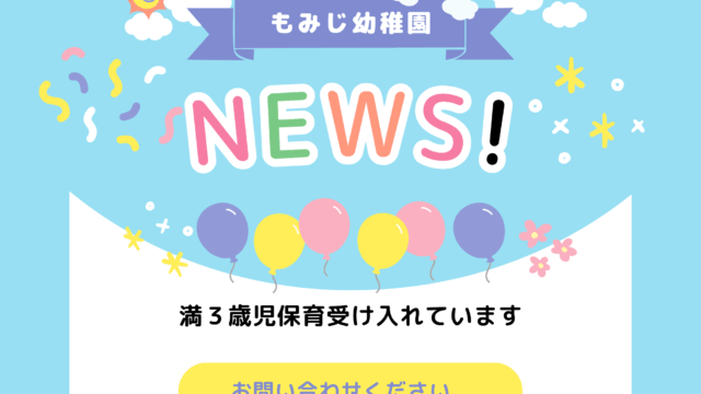 おしらせ 満3歳児入園について 2025-11-14 momoji もみじ幼稚園 | 藤沢市 2026年度 未就園児クラスと満3歳児入園について もみじ幼稚園次年度(3年保育)につながる親子教室があります。 親子教室に通いながら満3歳児クラスに編入することができます。 …